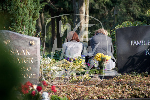 Trauernde zwischen Grabsteinen